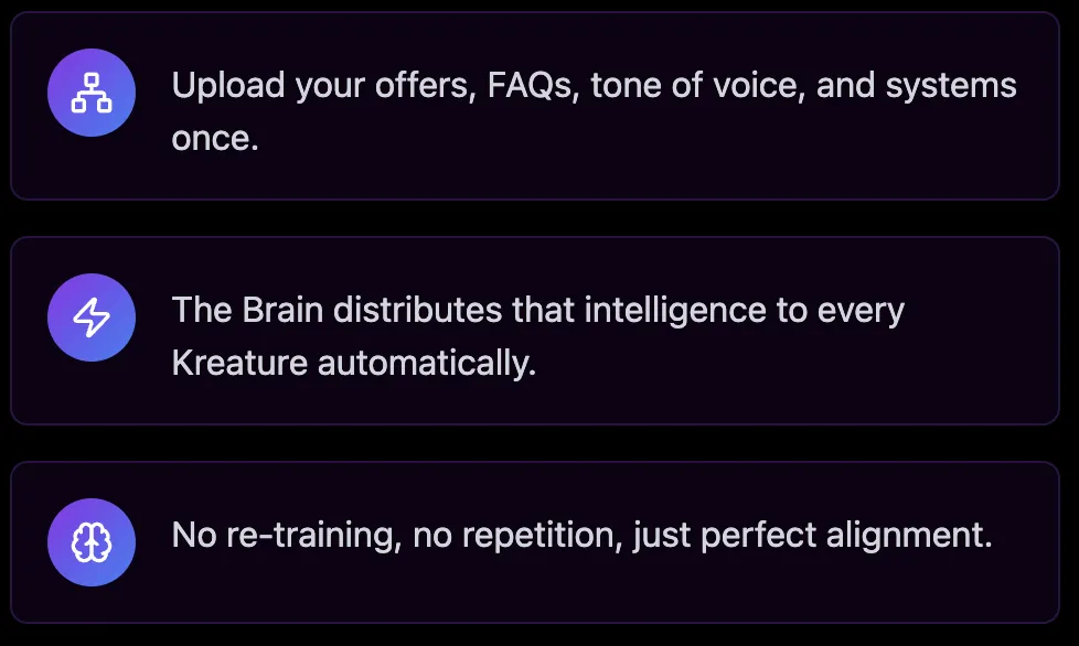 8 Digital Kreatures built to grow your business, automate your communication, and turn data into predictable revenue 24/7.